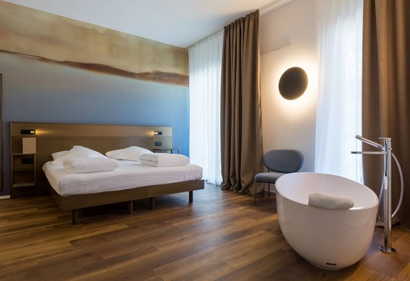 Die kürzlich renovierten Zimmer zeichnen sich durch ein modernes und raffiniertes Design aus, perfekt, um eine regenerierende Pause zu genießen, nur wenige Schritte von einem der schönsten Seen Italiens.