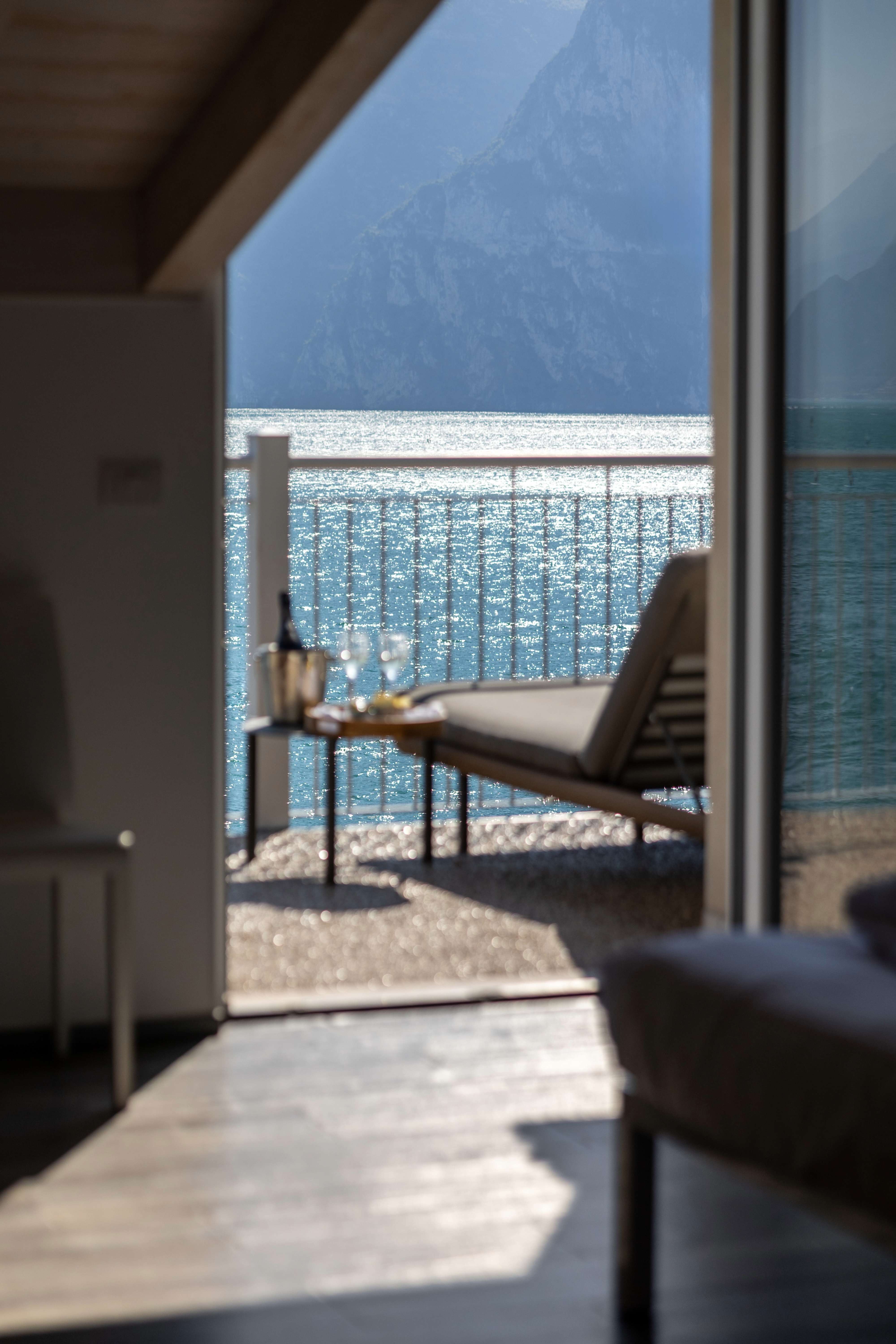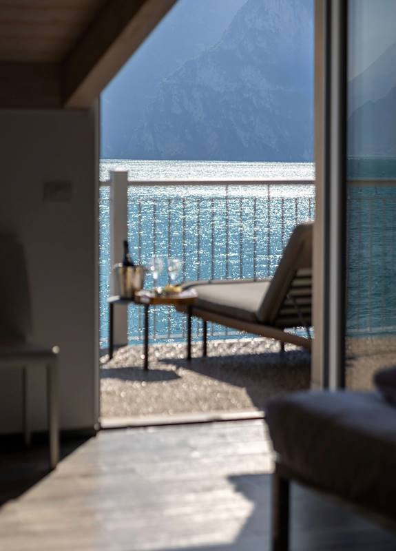 Molte tipologie di camera dispongono di balconi o terrazze fronte lago, attrezzati con lettini prendisole o tavolini, ideali per rilassarsi al sole, leggere un libro o godersi un aperitivo con vista.